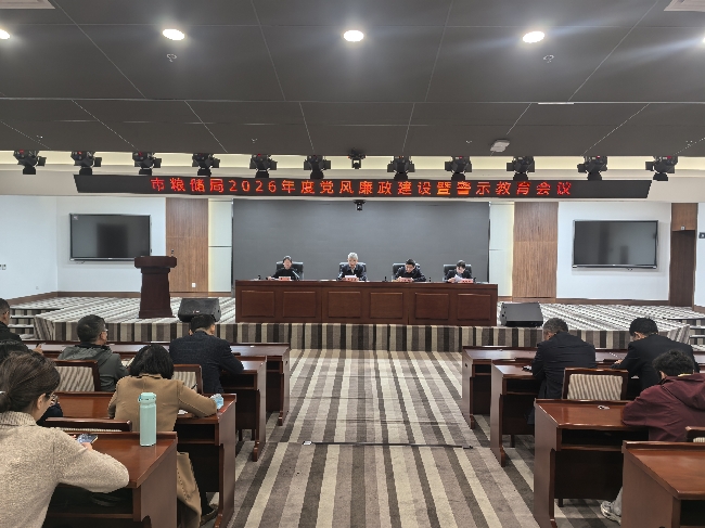 2026年4月20日,市粮储局召开2026年度党风廉政建设暨警示教育会议。党组书记、局长卢天恒主持会议并讲话,驻市应急管理局纪检监察组组长刘剑锋到会指导。市粮储局全体党员干部参加会议。